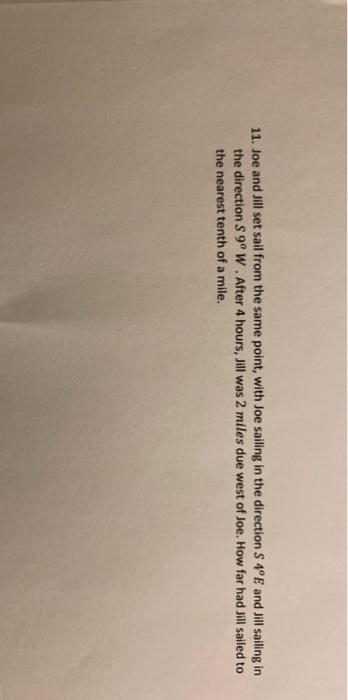 Solved 11 Joe And Jill Set Sail From The Same Point With Chegg Com